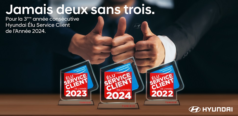 Hyundai Tunisie a décroché le titre « Elu Service Client de l’Année » dans la catégorie concessionnaires automobiles pour la troisième fois consécutive. Le représentant de la marque considère cette récompense comme étant le signe de son « engagement continue envers l’excellence du service et sa capacité à maintenir des niveaux exceptionnels d’engagement client ».